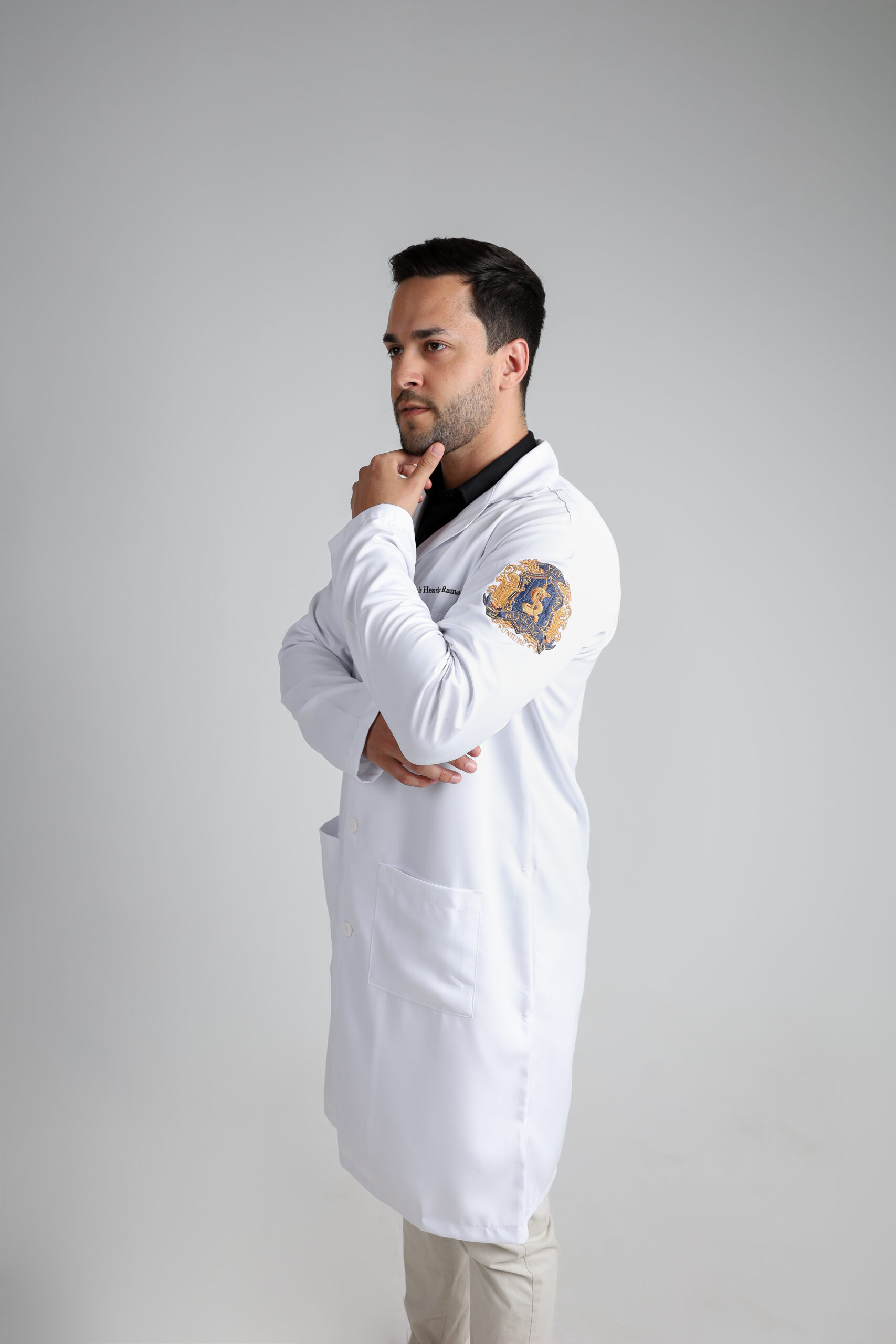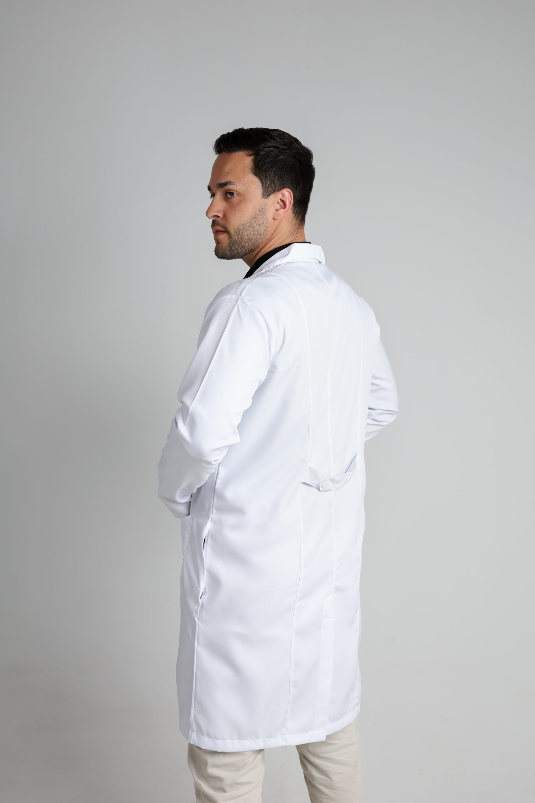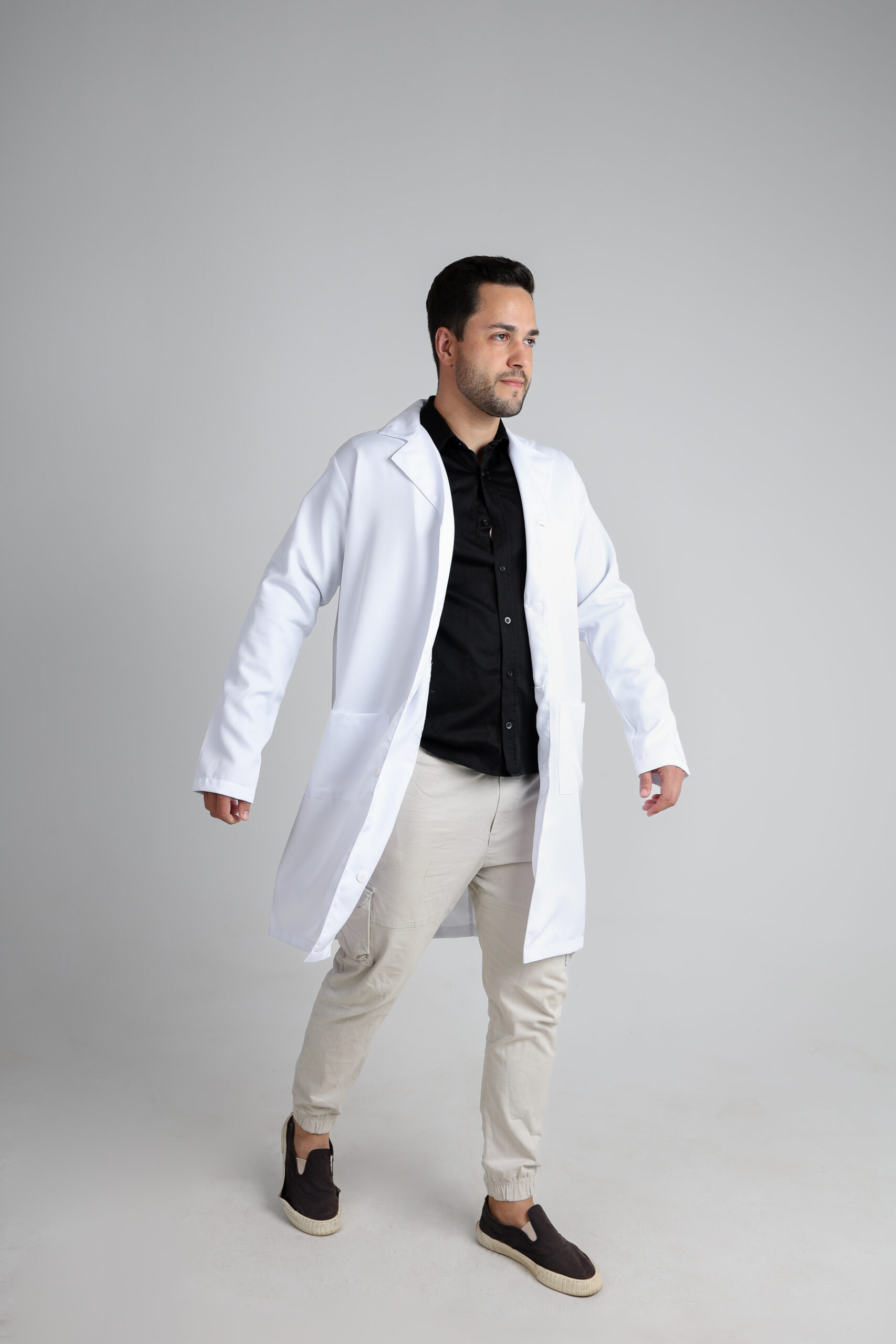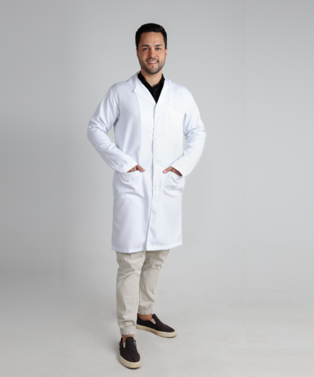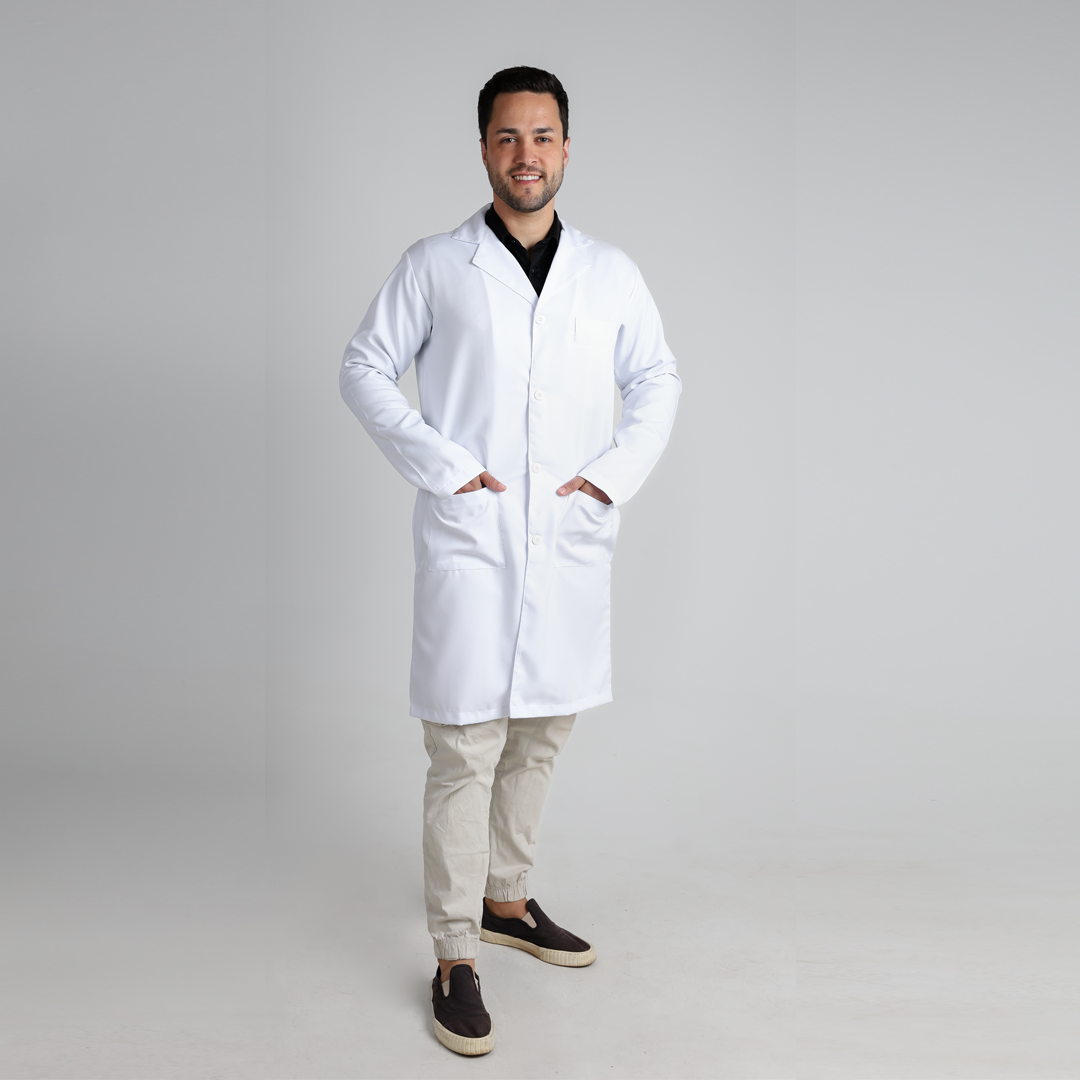 Conheça o Confort: o jaleco masculino com gola esporte, ideal para estudantes e profissionais da saúde. Clássico, prático e confortável, ele é perfeito para encarar a rotina sem abrir mão da elegância.