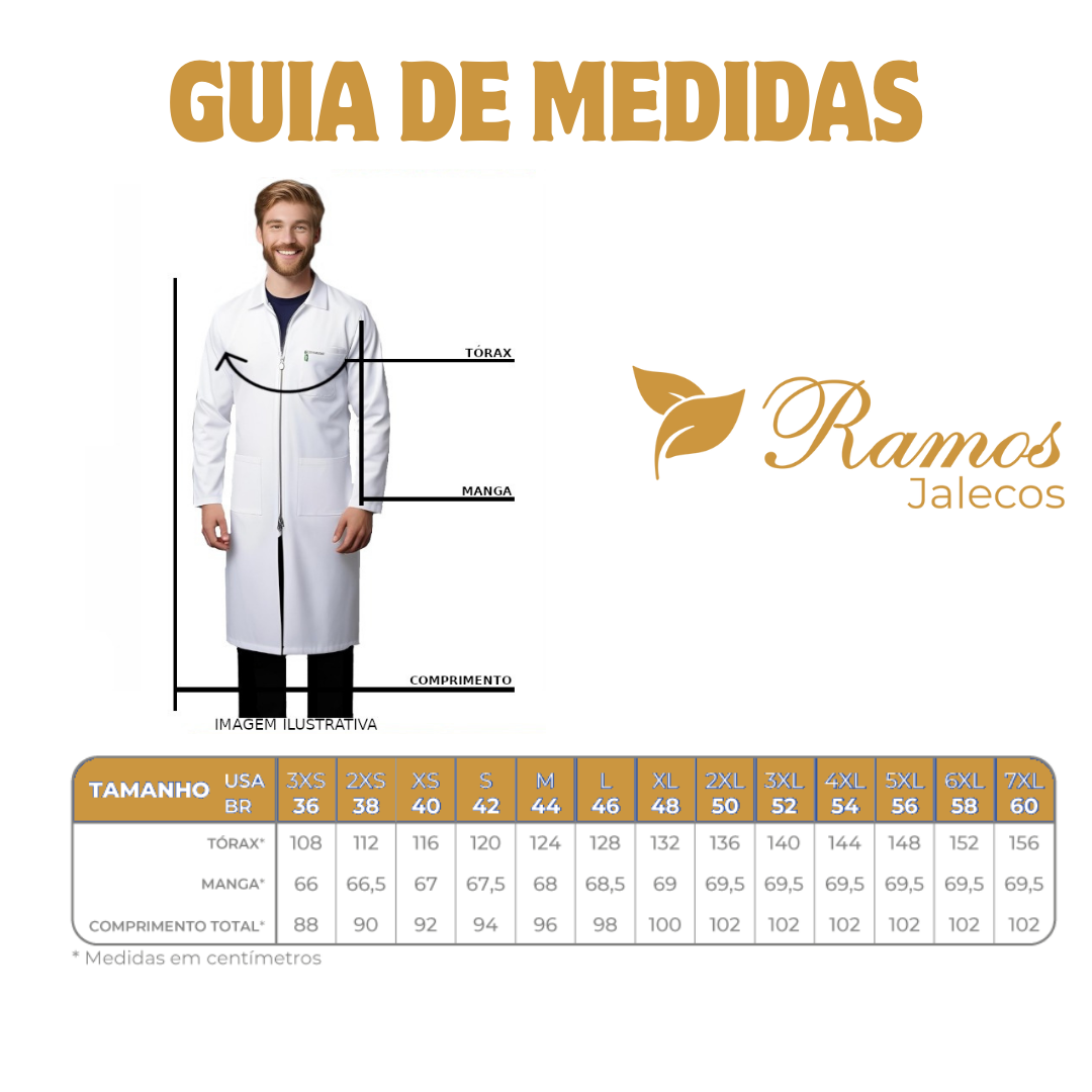 – Fechamento com botões na cor do jaleco